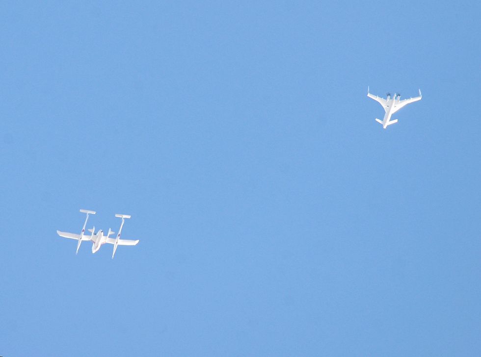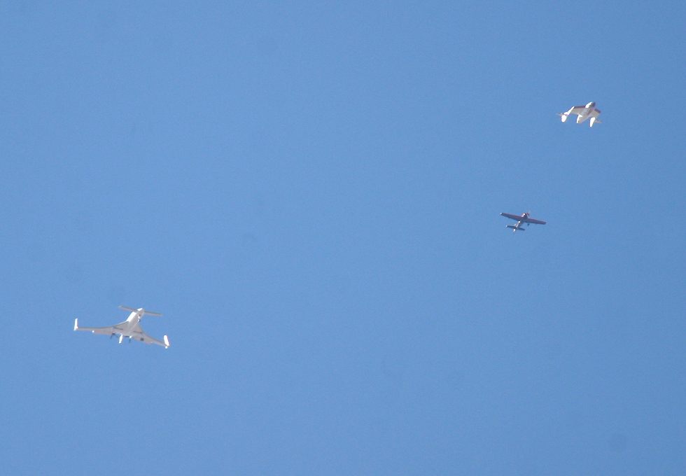 StarShip chases White Knight and SpaceShipOne as they climb for launch.