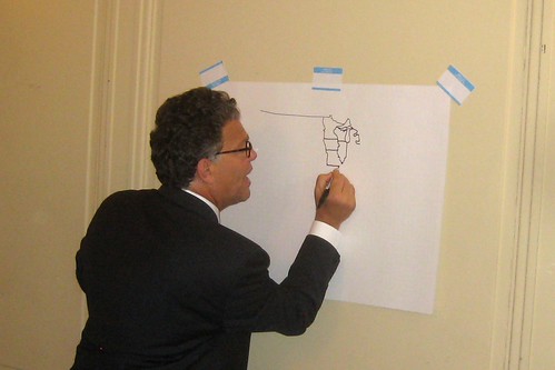 Al Franken can draw an extremely accurate map of the USA from memory, while taking questions from the audience.